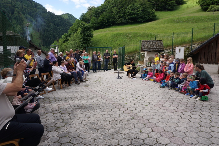 V petek, 24. 5. 2024, je bil za otroke Antonovega vrtca prav poseben dan. K njim so namreč na obisk prišli njihovi stari starši in drugi sorodniki. Najprej je gospod župnik izrekel dobrodošlico s kratkim nagovorom, potem pa so sledile šmarnice. Z otroki smo pripravili tudi program z različnimi pesmicami, ki se jih učimo že celo leto. Nato pa so otroci s svojimi starimi starši ustvarili okvirčke s podobicami Marije. Vmes smo sorodnike postregli tudi s piškoti, ki smo jih spekli sami. Na koncu so otroci peljali sorodnike še na igrala pred vrtcem.