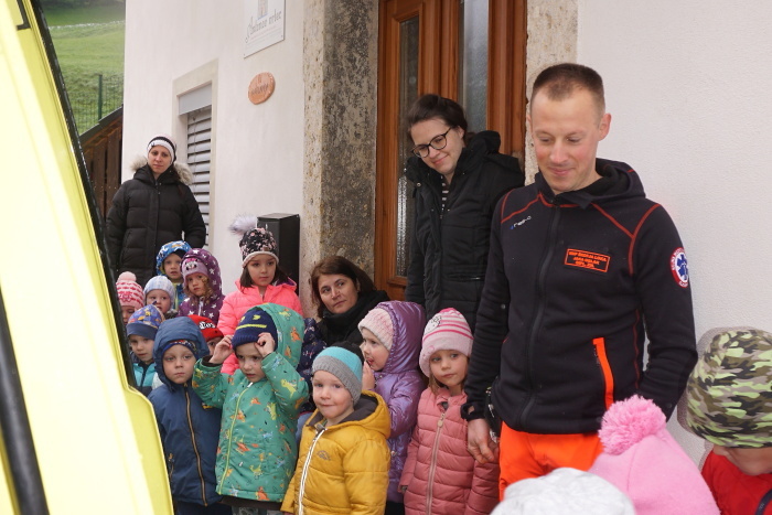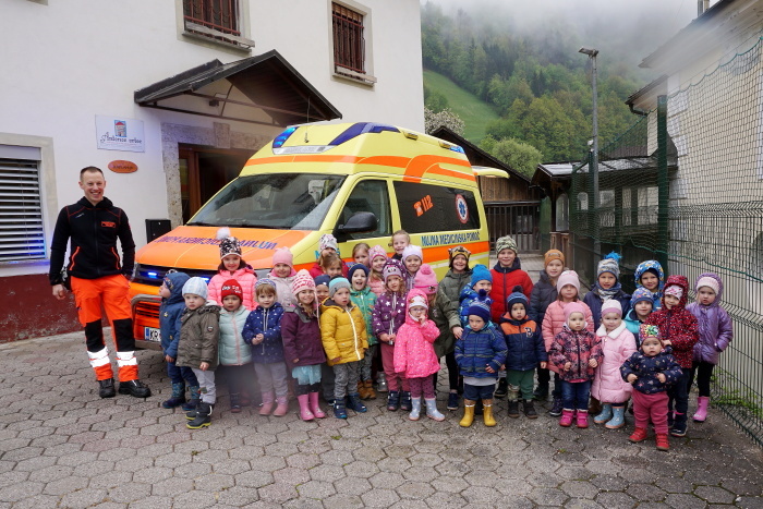 Obisk reševalca in voznika reševalnega vozila Jaka Oblaka je bil za otroke zelo poučen in zabaven.