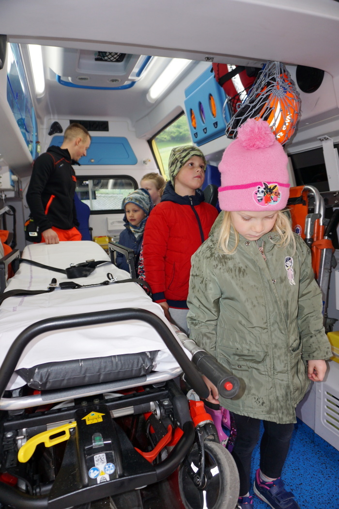 Otroci so spoznavali opremo, ki jo uporabljajo reševalci, kot so nosila, jeklenke s kisikom, pripomočke prve pomoči in se  sprehodili skozi reševalno vozilo. Poleg tega je reševalec otrokom predstavil osnovne postopke prve pomoči, kot so oskrba manjših ran in klic na pomoč.