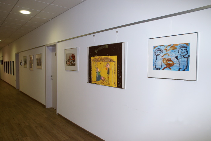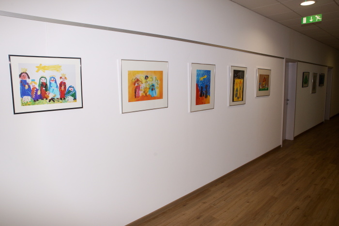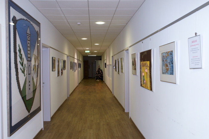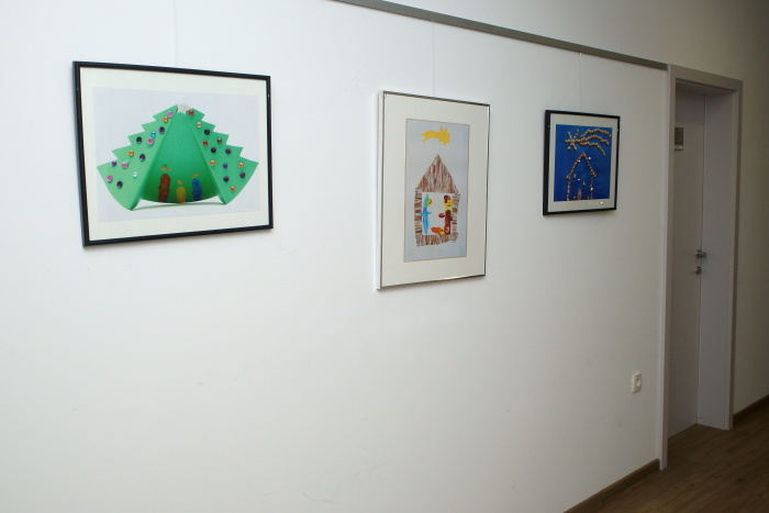 Ob vstopu v vrtec nas je pričakala topla dobrodošlica, cvetje in razstavljeni izdelki otrok, ki so z risbami upodobili svoje družine.