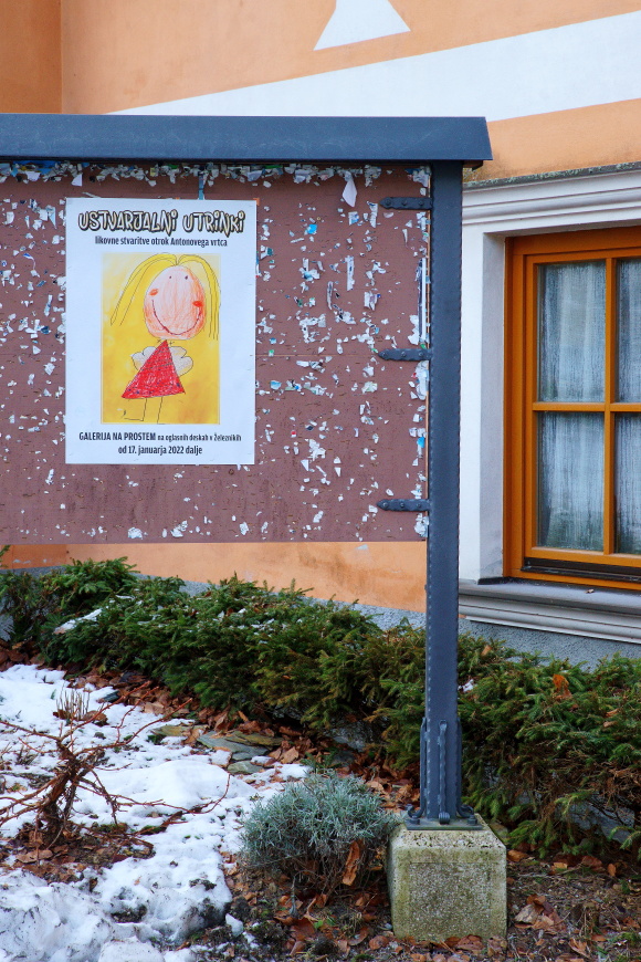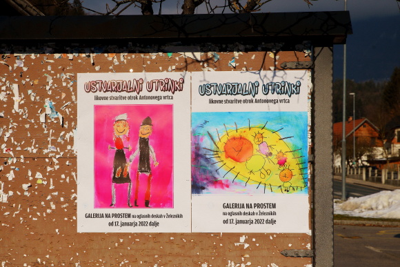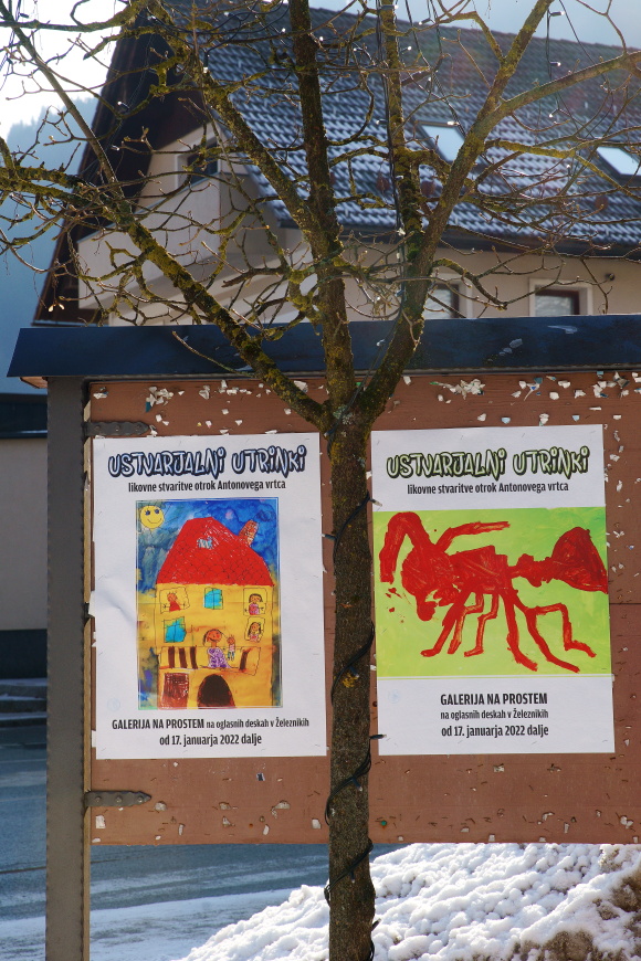 Sredi težkega korona časa, 17. januarja, na praznik zavetnika vrtca svetega Antona Puščavnika, so oglasne deske v Železnikih dobile igrivo podobo. Okrasili smo jih z likovnimi stvaritvami otrok Antonovega vrtca. Naš namen je bil predstaviti širši javnosti, kaj vse ustvarijo male otroške ročice in čista srca naših najmlajših. Želeli smo polepšati kraj in razveseljevati mimoidoče, saj tak izdelek na oglasni deski pritegne pozornost ter prepodi slabe misli. Verjamem, da nam je uspelo, saj so odzivi na razstavo plakatov res lepi.