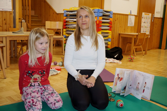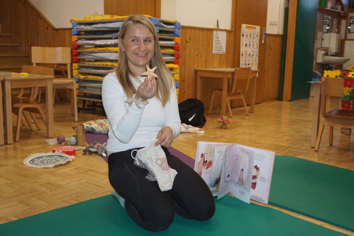 V četrtek, 30. 1. 2025, nas je obiskala gospa Daniela Gaser v spremstvu Katarine Gasser (mamice otroka iz vrtca). V igralnici starejše skupine je vsem otrokom predstavila svojo slikanico z naslovom: Prisluhni gozdu. Najprej je pokazala različne rekvizite ter glasbila, s katerimi jih je motivirala. Predstavila nam je naslovnico slikanice in nam pokazala slike, nato pa skupaj z otroki prikazala gibanje živali. Štiri zgodbe so vsebovale dihalne vaje ter zvočne meditacije za otroke in so se dogajale v štirih letnih časih. S starejšo skupino so potem zgodbo tudi gibalno uprizorili. Barvite slike v slikanici so otroke pritegnile k poslušanju in verjamem, da so bili tudi otroci navdušeni nad gibalno uprizoritvijo zgodbe.