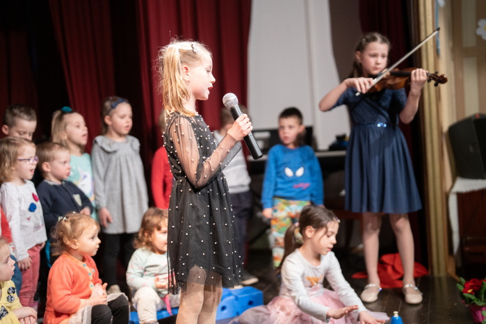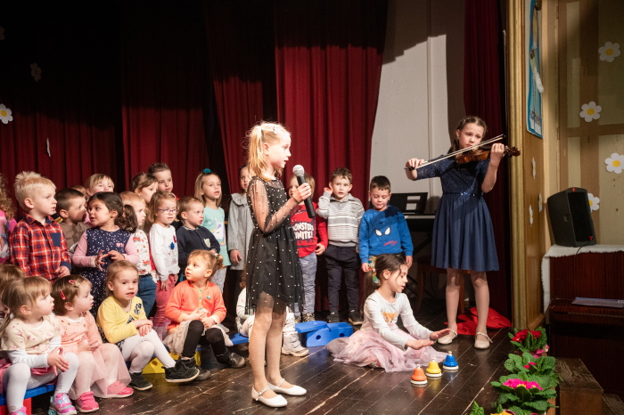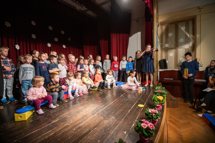 V ponedeljek, 24. 3. 2025, je bila dvorana Krekovega doma v Selcih skoraj premajhna za vse obiskovalce. Namesto velikega šopka rož je bila na odru velika skupina otrok. Kaj ni to najlepši šopek za starše? Bili so slavnostno oblečeni in njihov nastop je pritegnil pozornost vseh v dvorani. Vzgojiteljice smo bile prijetno presenečene, da so se opogumili in prišli nastopat skoraj vsi otroci iz vrtca. Od tistih, ki še niso dopolnili dve leti, do bodočih šolarjev. Prav vsaka točka programa je bila nekaj posebnega, zato je vedno sledil velik aplavz, ki je otrokom naslikal nasmeh in pogum na obraze. Bravo, naši otroci, ponosna sem na vas! In seveda tudi na vzgojiteljice, ki z vami v vrtcu vsak dan pojejo in igrajo na instrumente. Zato so lahko sestavile tako bogat program, da ste pokazali svoje znanje in talente, kar se je videlo in čutilo vsako minuto nastopa.