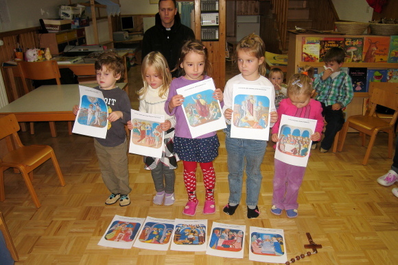 Ta svetovna akcija je potekala ob 9. uri, vanjo pa so bili vključeni otroci vsega sveta. Skupaj z gospodom kaplanom Brankom smo ob aplikatih in kratki razlagi skrivnosti rožnega venca molili in za konec tudi zapeli.