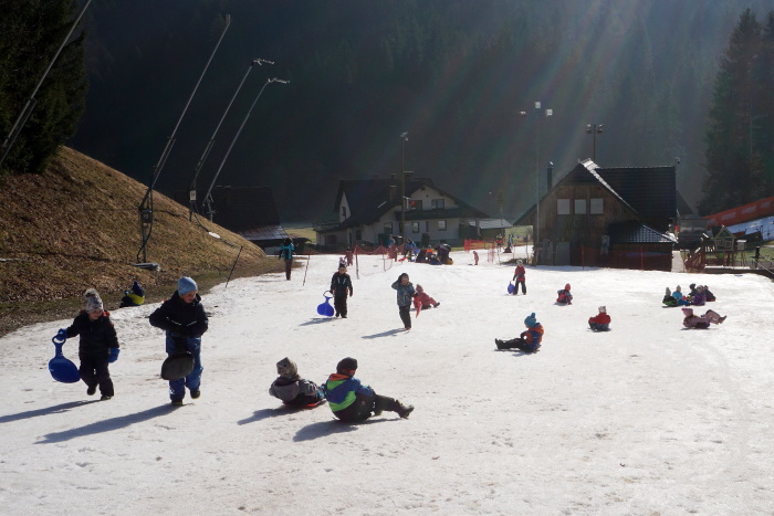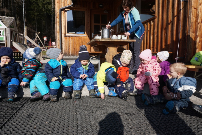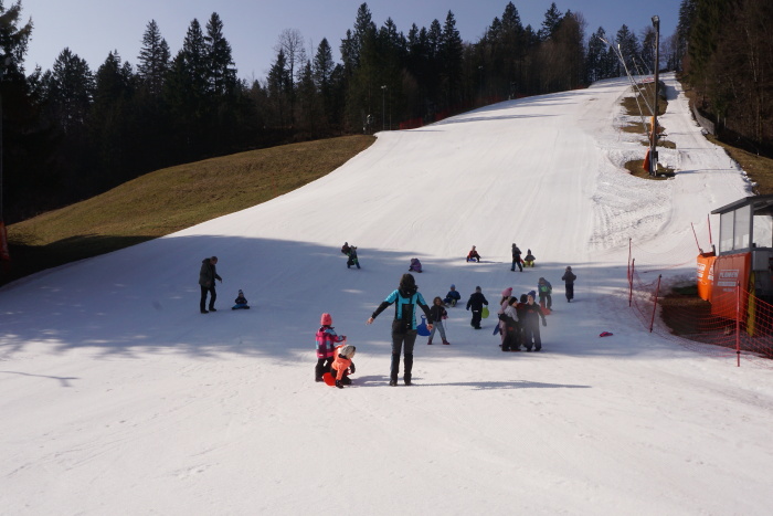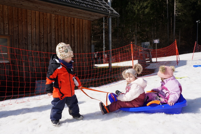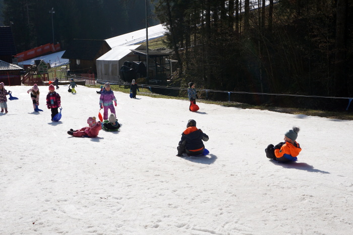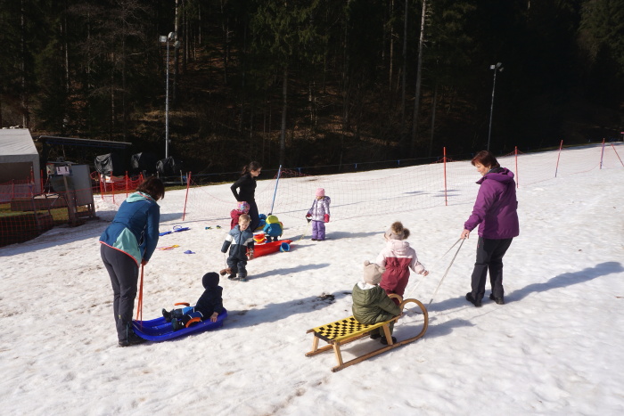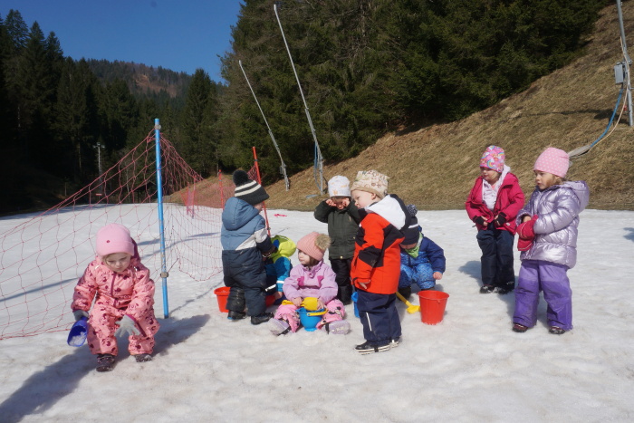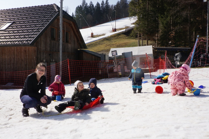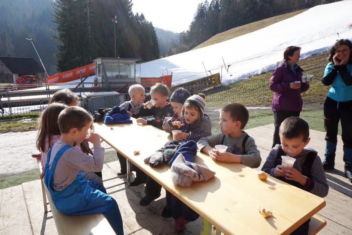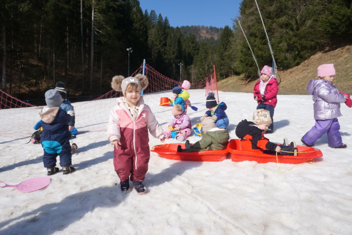 Vmes smo si vzeli čas za malico, da se okrepčamo, obenem pa smo se še malo pogreli na prijetnem zimsko-pomladnem soncu. Pred odhodom smo čas izkoristili še za igro na igralih, kjer energije kar ni zmanjkalo.