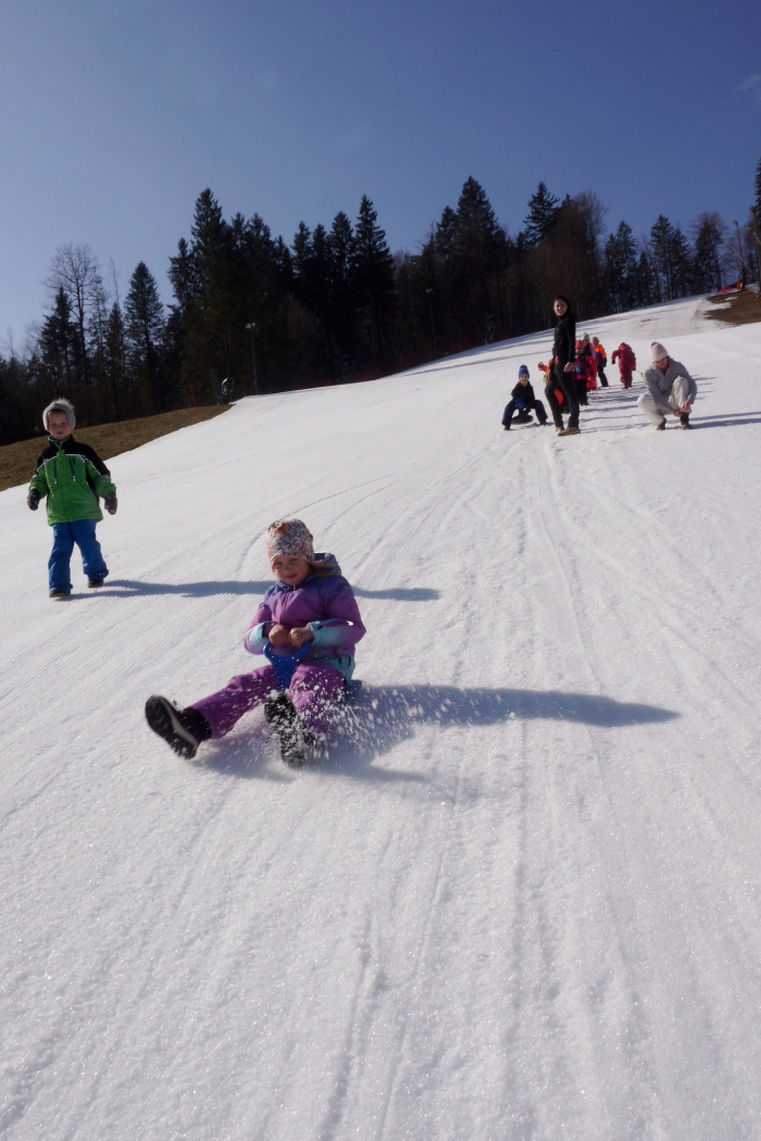 Z avtobusom smo se odpravili na pravo snežno dogodivščino, kjer so otroci z velikim navdušenjem raziskovali zasnežene strmine. Veselo smo se lopatali in sankali tudi po večjih klančinah ter se igrali na snegu. Smeh, razigranost ter otroško veselje so odmevali po belem pobočju. Večja strmina? Ni težav!